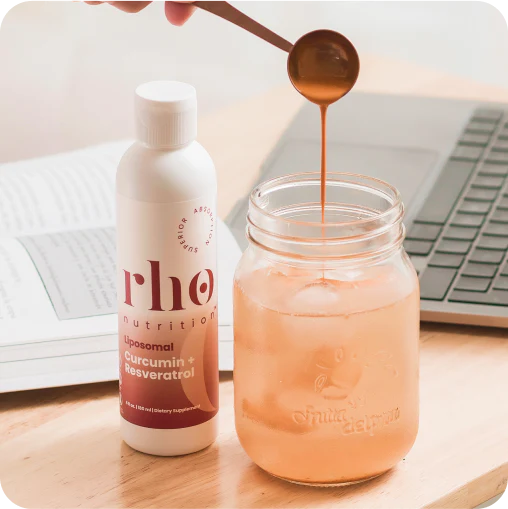 I take a teaspoon of Rho Curcumin + Resveratrol in the afternoon to help support a healthy inflammation response, improve my immune system and support healthy aging on a cellular level.