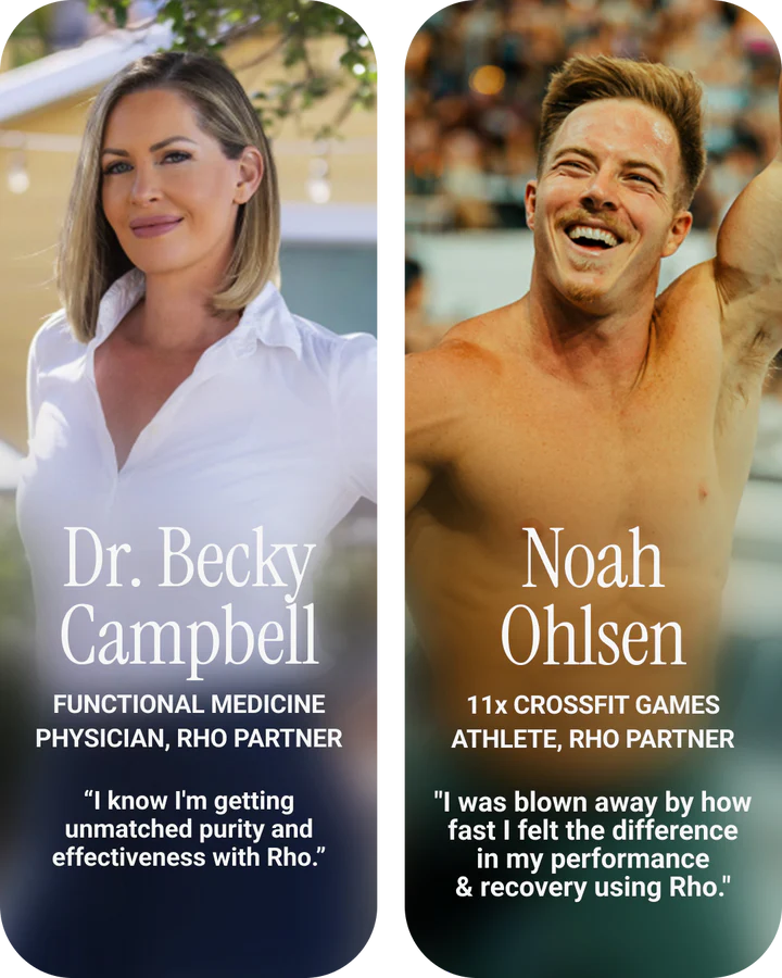 Driven to make a difference, I partnered with my colleague George, industry experts and award-winning PhDs to establish Rho – a brand rooted in trust, innovation, and genuine wellness. Together, we spent countless hours crafting products we'd trust for our own families. Every formulation starts with potent, clean, and bioavailable ingredients, delivered via a next generation Liposomal Delivery System for unparalleled cellular absorption.